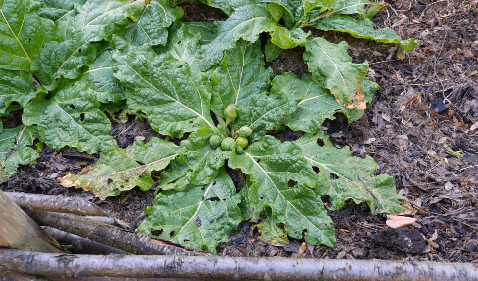 D’abord connue depuis l’Antiquité pour ses propriétés médicinales, elle fut ensuite totalement oubliée au Moyen Âge. Nous la redécouvrons depuis les années 1990, sous le nom de « Baies de Goji », promues en médecine chinoise. Il existe trois espèces de Lyciets qui poussent naturellement en France. Deux sont indigènes dans l’Europe méridionale : Lycium europaeum et Lycium barbarum. Lycium chinensis a été introduit d’Asie orientale et s’est naturalisé en de nombreux endroits. - Rhubarbe – Rheum x cultorum
