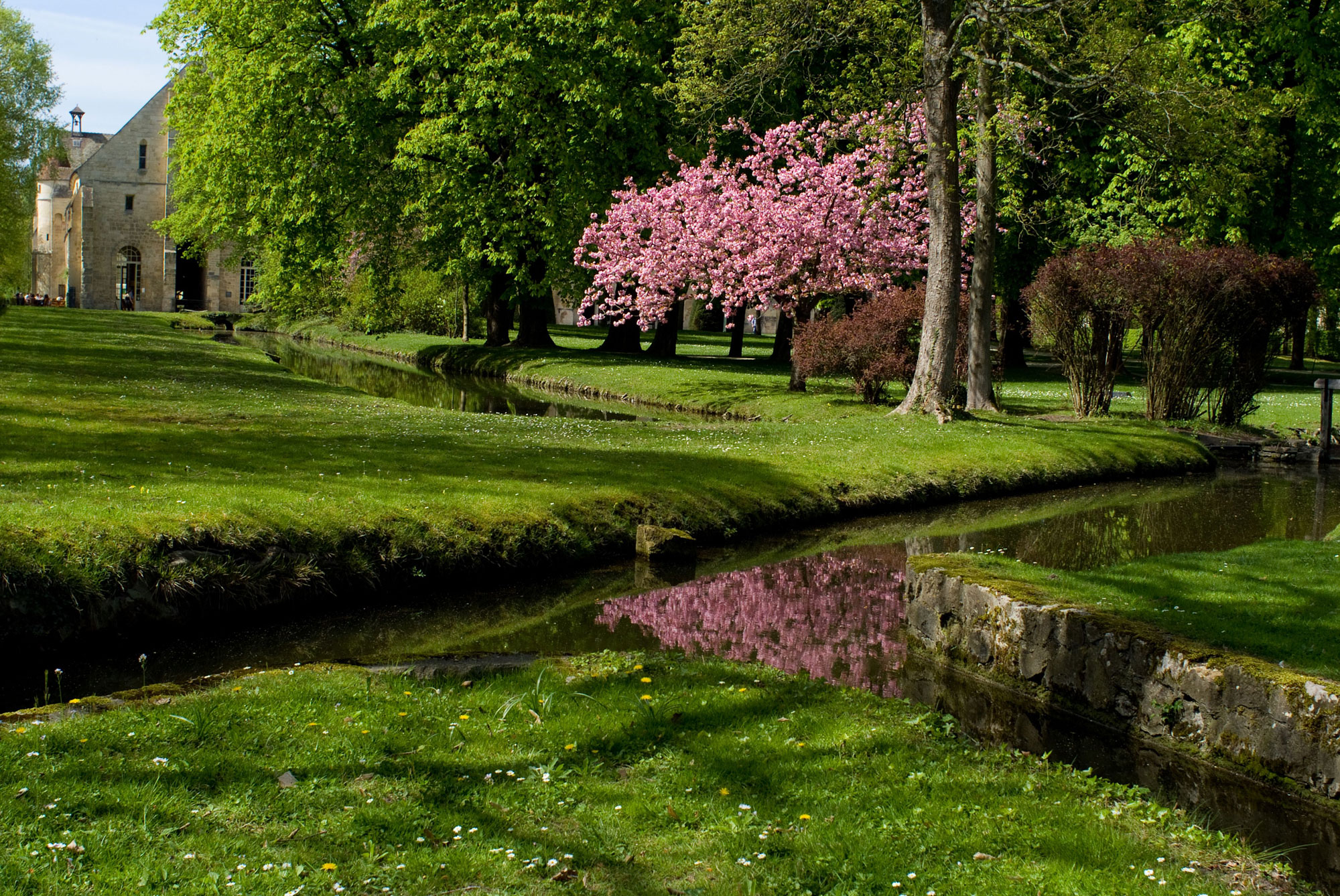 Synthèse de ses différents usages et aménagements depuis l’installation du monastère en 1228, le parc de la Fondation Royaumont s’organise autour d’un réseau de canaux et de plans d’eau dont l’origine est strictement utilitaire. Initialement, le jardin monastique s’étendait sur une superficie de 20 hectares, clos par un mur de pierres toujours en place. Les remaniements successifs du domaine intervenus depuis la Révolution ont abouti, en 1923, à la division de l’enclos en deux propriétés séparées ; l’une rattachée à l’ancien palais abbatial et l’autre à l’abbaye qui bénéficie désormais d’un parc de 6, 5 hectares. L’ensemble a été classé au titre des Monuments Historiques en 1948.