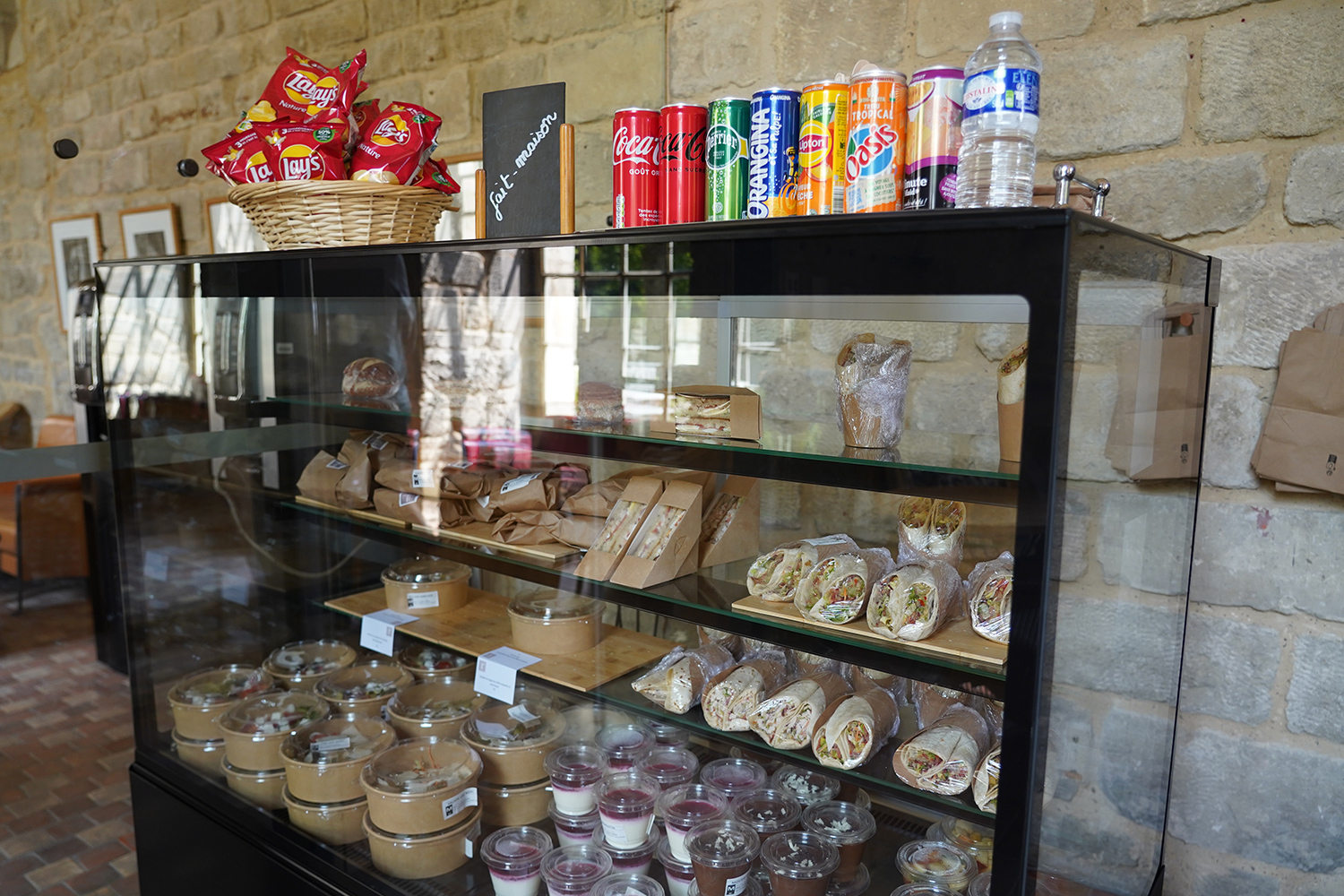 Ce qui vous attend pour votre déjeuner sur l’une des tables de la terrasse ou sur l’une des pelouses qui font face à l’abbaye : deux sortes de salades (légumes rôtis, roquette et parmesan ou mesclun et salade de tomates façon grecque), des wraps (poulet fumé crudités ou avocat et crudités) un roll (thon crudités mayonnaise), un bun bretzel (roquette et pastrami), des sandwichs (club, saumon ou jambon beurre), une mousse au chocolat, un panacotta, une salade de fruits… Le tout étant produit par l’équipe de cuisine de la Fondation.