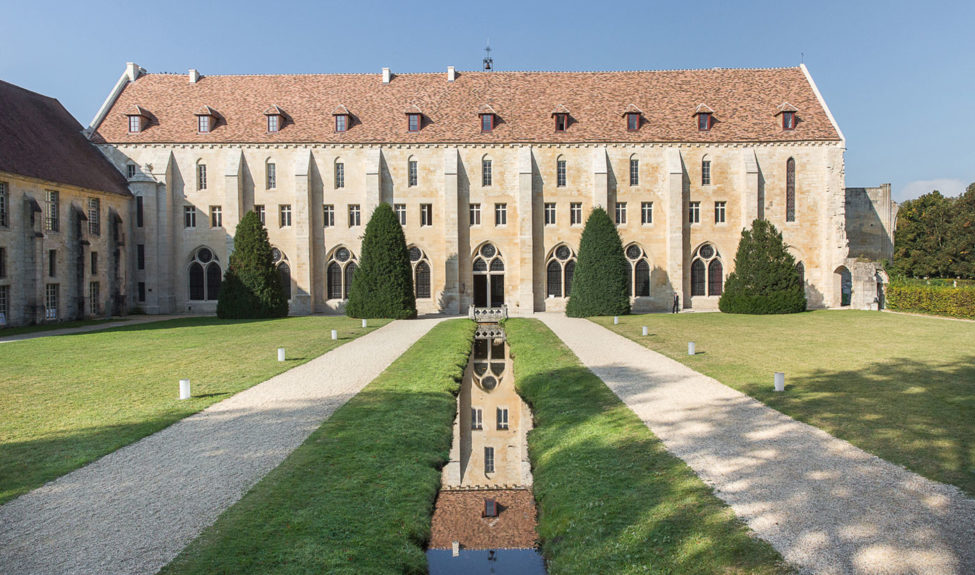 Situé sur l’aile orientale du cloître, cet édifice de 14 mètres de large était initialement protégé par la clôture monastique et invisible aux voyageurs qui accédaient à l’abbaye par une porterie située à l’Ouest de l’enclos. C’est aujourd’hui le premier bâtiment qui s’offre au visiteur, lorsqu’il pénètre dans le parc de Royaumont.