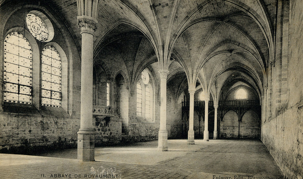 En 1936, un orgue Cavaillé-Coll fut installé dans le réfectoire, entraînant la destruction de la tribune, et inauguré par François Lang le 27 juin 1936, lors du premier concert de ce qui allait devenir la « Saison Musicale de Royaumont ». Il fut entièrement restauré entre 2002 et 2007 et habillé d’un buffet en chêne, de style néo-gothique. À proximité de l’orgue se trouve le mausolée du comte Henri de Lorraine-Harcourt, réalisé au XVIIIe siècle par le sculpteur français Antoine Coysevox, et retiré de l’église de Royaumont juste avant sa destruction (il avait d’abord trouvé refuge dans l’église paroissiale d’Asnières-sur-Oise jusqu’à sa réinstallation à Royaumont en 1959).