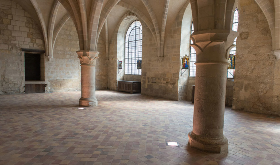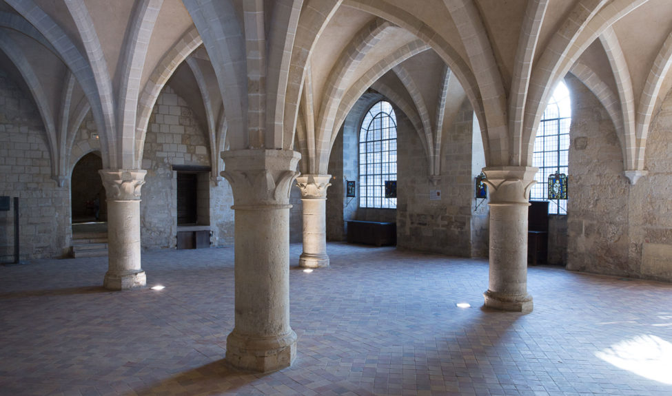 Située entre le réfectoire des moines et celui des convers, cette pièce étonne par sa grande taille, liée au nombre conséquent de religieux pour lesquels il fallait préparer des repas à l’époque de Saint Louis.