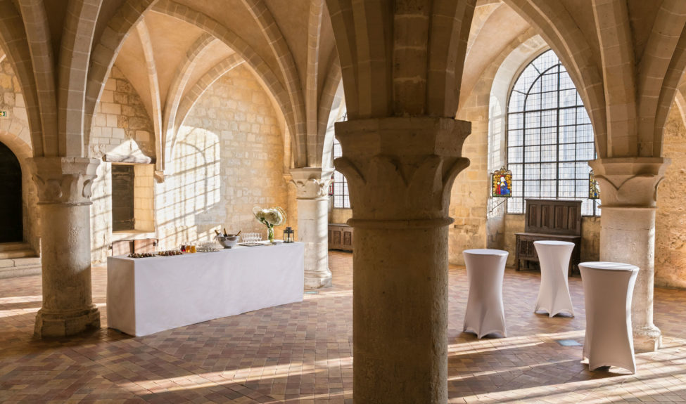 Ses quatre épaisses colonnes et les contreforts des voûtes du cloître restés apparents évoquent un autre aspect du monde médiéval, plus quotidien et, de ce fait, plus proche de nous.