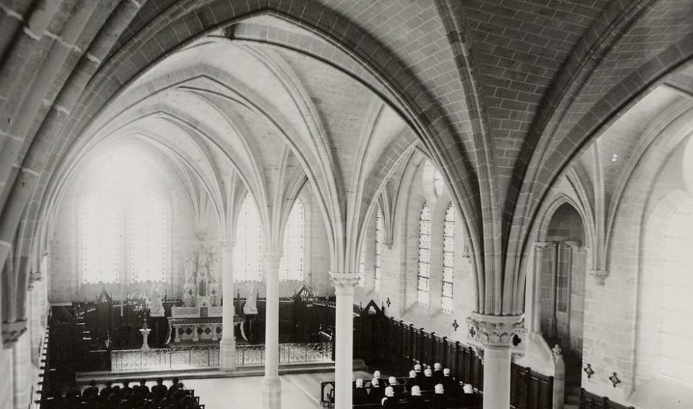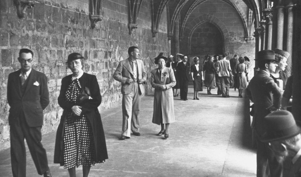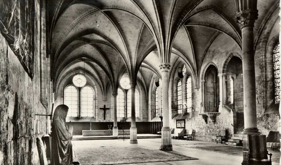 1931: Henry Goüin, grandson of Jules Goüin, marries Isabel Lang. Together, they embarked on a program of restoration and refurbishment of the buildings – the convers building, roofing of the cloister, repair of the latrine building’s roof structures, installation of a Cavaillé-Coll organ in the former refectory and removal of the gallery, first restoration of the old kitchens, re-roofing of the guesthouse and monks’ building, installation of central heating – and turned the abbey into a meeting place for artists and intellectuals.