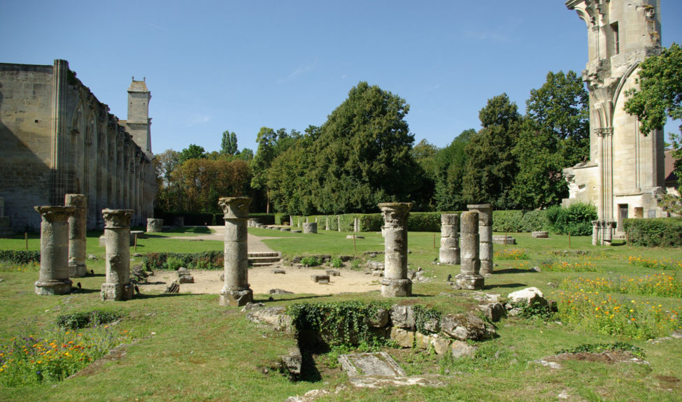 The turret from the North branch of the transept also highlights the tripartite elevation of the church, typical of the large gothic churches built in the Ile-de-France around 1230, as well as the quality of the construction work. The few remaining sculpted features, plain and non figurative, are typically Cistercian. And yet, as of 1253, the General Chapter of Cîteaux decried the presence within the sanctuary of paintings, wall hangings, figures and other seraphs, not really consistent with the simplicity advocated by the White Monks… The Benedictine Rule was again bent when four of Louis IX’s children and three other members of the royal family were buried in the church’s choir. This was exceptionally tolerated by the Chapter and bears witness to the king’s attachment to Royaumont. Removed in August 1791, the recumbent figures of the princes are now in the Saint Denis Basilica, whereas the other statuary is preserved in the Cluny and Louvre museums in Paris.