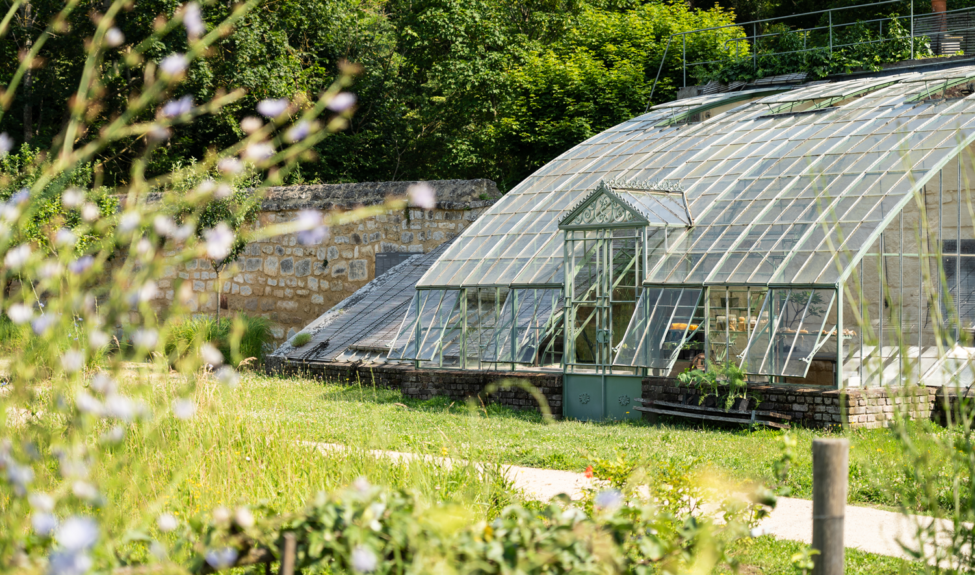 Le Potager-Jardin de l’abbaye de Royaumont est un monde à lui seul. Conçu par les paysagistes Astrid Verspieren et Philippe Simonnet, inauguré en 2014 à l’occasion des 50 ans de la Fondation, il combine des milieux très différents. Bordé à l’est par un petit bois, il aligne le long du mur de clôture des rangées de salades, de pieds de rhubarbe et d’haricots géants. De l’autre côté du chemin s’étendent des carrés où les plantes peuvent parcourir l’intégralité de leur cycle de vie, de la graine à la graine, dans des conditions proches de la permaculture. Enfin, à l’ouest, une prairie rarement fauchée abrite des centaines d’insectes pollinisateurs. Entre leçon de maraîchage pour tous et digressions zoologiques, Romain Van de Walle, le maître des lieux, propose aux curieux et aux amateurs d’observer à ses côtés les interactions entre les habitants des différentes zones de cet espace reconnu comme « jardin remarquable » par le ministère de la Culture.