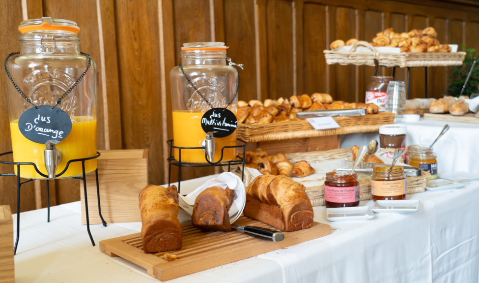Aux pains spéciaux, viennoiseries et brioches dorées, pancakes, œufs brouillés et lards fumants s’ajouteront pour votre plus grand plaisir :