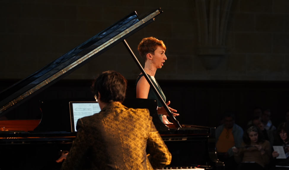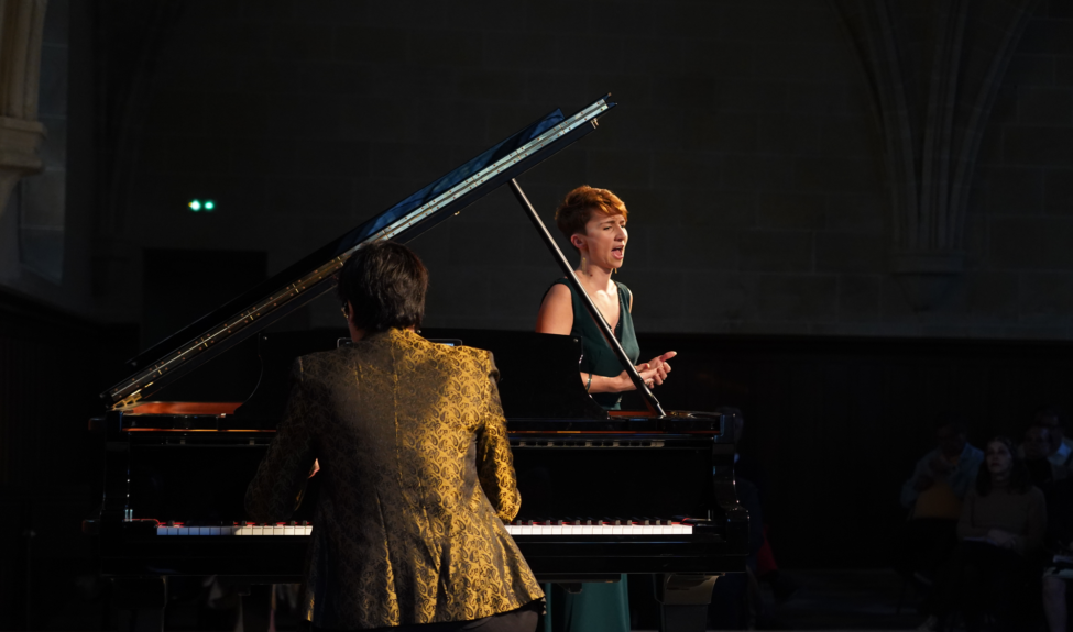 Habituellement réunies autour de la recherche de nouveaux répertoires, Brenda Poupard et Anne-Louise Bourion se passionnent depuis leur rencontre au CNSMDP pour les compositrices oubliées telles que Rita Strohl ou Henriette Puig-Roger. La mezzo-soprano et la pianiste ont décidé d’explorer à Royaumont un répertoire plus canonique, à leur façon : en s’appropriant les Lieder introspectifs et métaphysiques de Liszt, souvent chantés par des barytons, et en s’attelant à forger leur propre interprétation des célèbres Banalités de Poulenc. Une occasion rêvée d’aborder ces monuments de la mélodie et du Lied aux côtés des maîtres de l’Académie Orsay-Royaumont.