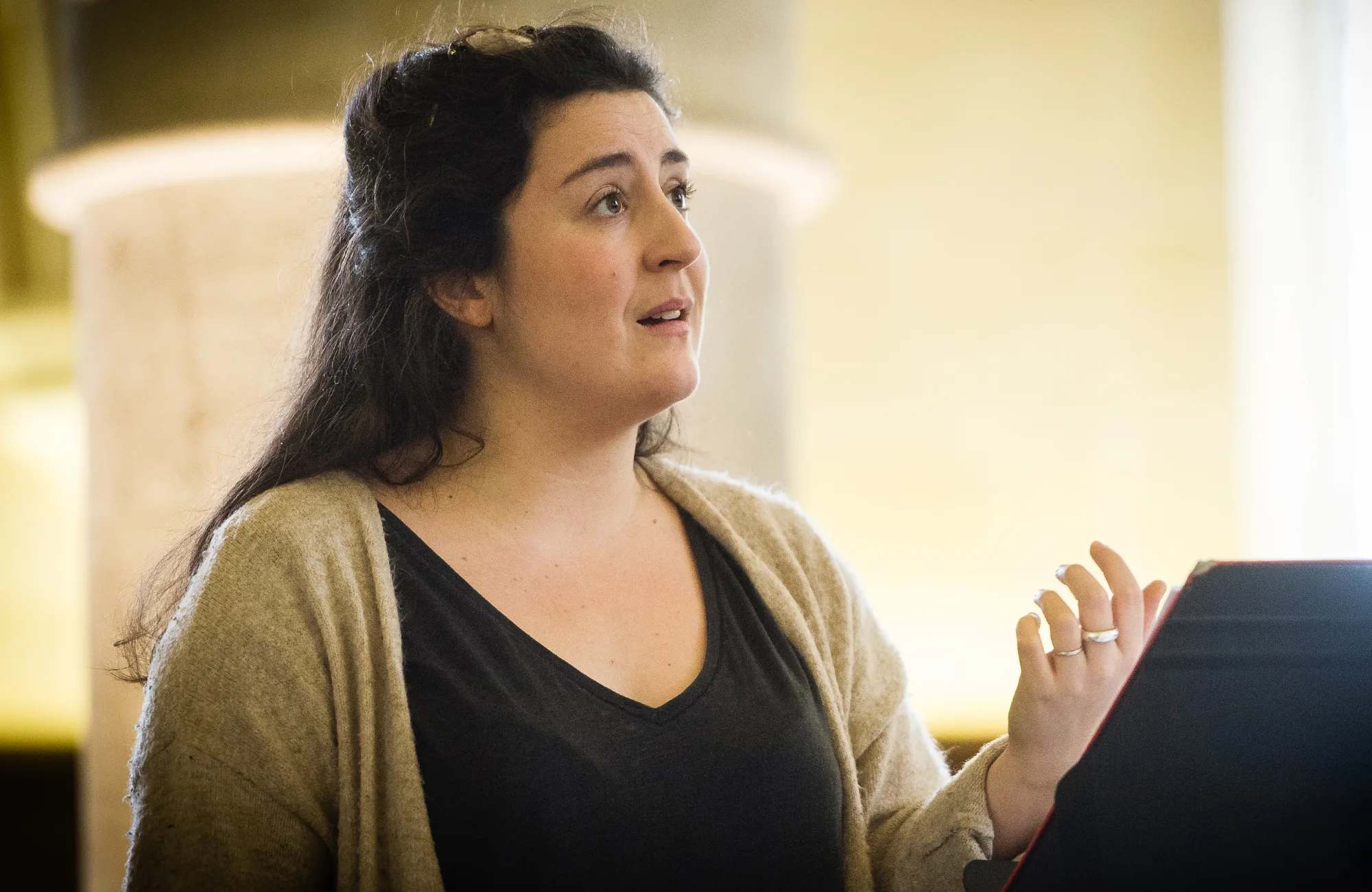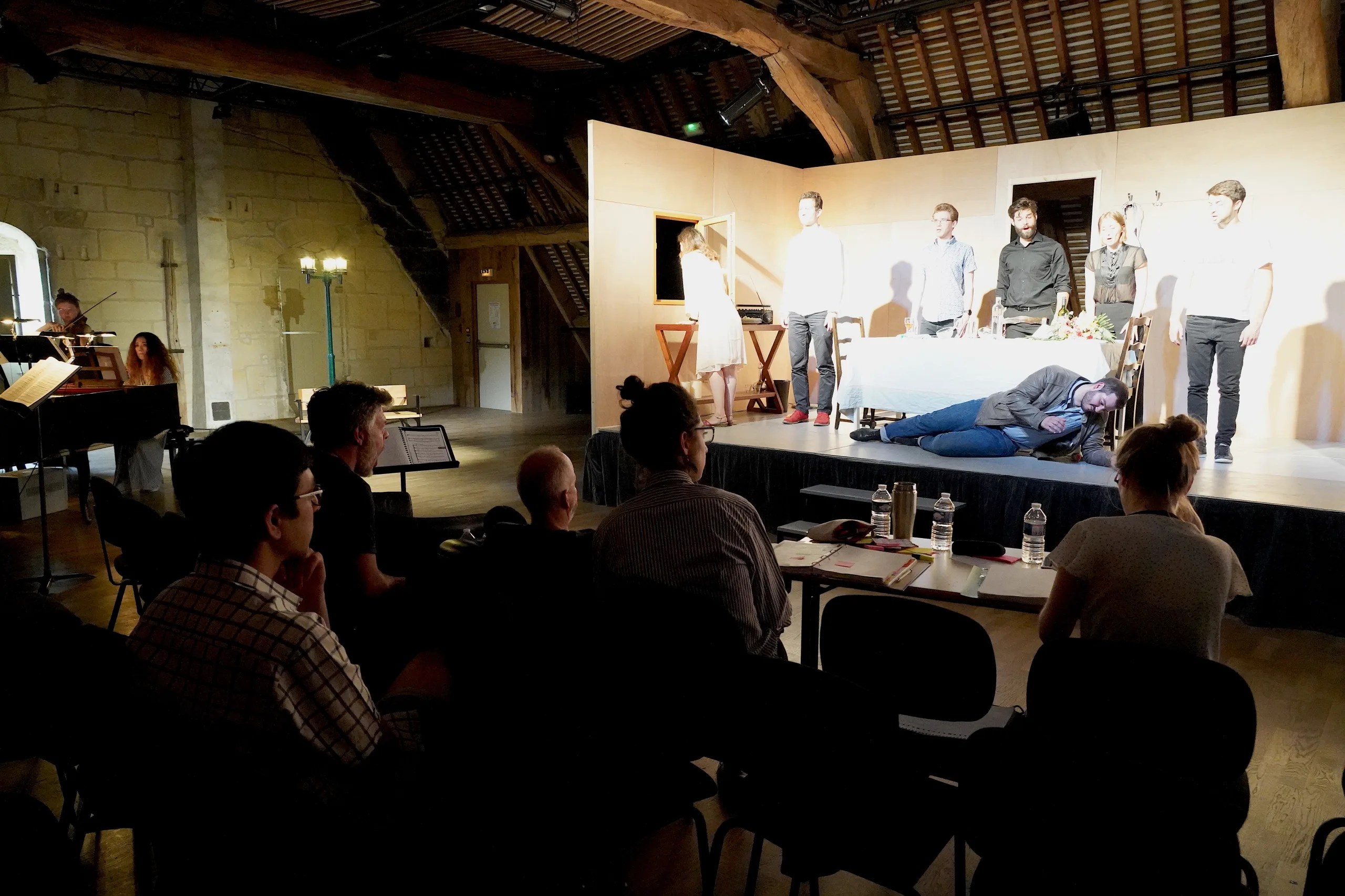 Dix stagiaires présentent le travail qu’ils ont mené 7 jours durant, accompagnés du baryton et enseignant de ce répertoire, Marc Mauillon.