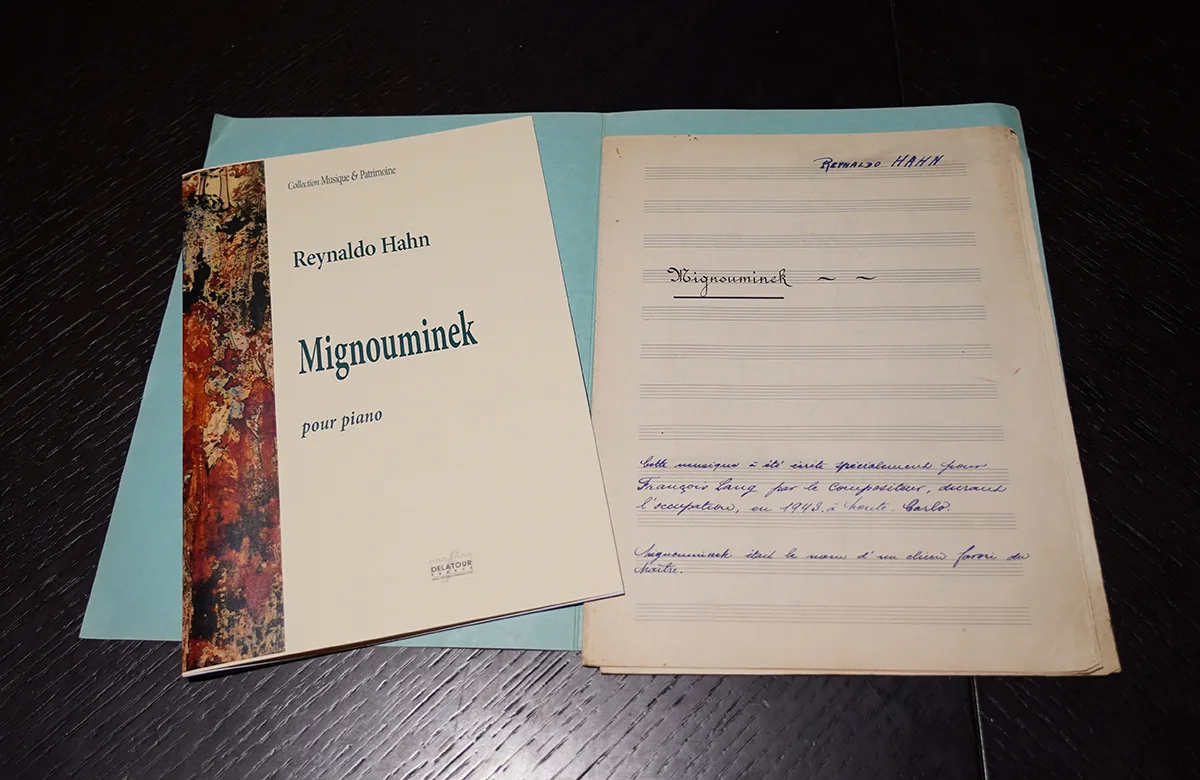 La Bibliothèque se réjouit de la parution de Mignouminek aux éditions Delatour. Cette pièce de Reynaldo Hahn que Thomas Vernet, le responsable des Bibliothèques Royaumont, décrit comme « une pièce assez vive, une toccata assez brillante », avait été écrite pour François Lang pendant la seconde guerre mondiale, à l’époque où le pianiste résidait à Antibes, avant son arrestation à Grenoble, en 1943. François Lang la mentionne d’ailleurs dans sa correspondance. La copie manuscrite qu’il détenait – la seule connue – a été offerte à la Fondation en 2020 par Marie-Christine Daudy et sa sœur, Françoise de Lastic. L’édition chez Delatour s’ouvre sur une préface de Philippe Blay, le biographe de Reynaldo Hahn, qui s’est associé pour l’appareil critique au musicologue Nicolas Moron. L’œuvre avait déjà été jouée et enregistrée par Nathanael Gouin, elle est désormais accessible à tous les pianistes…