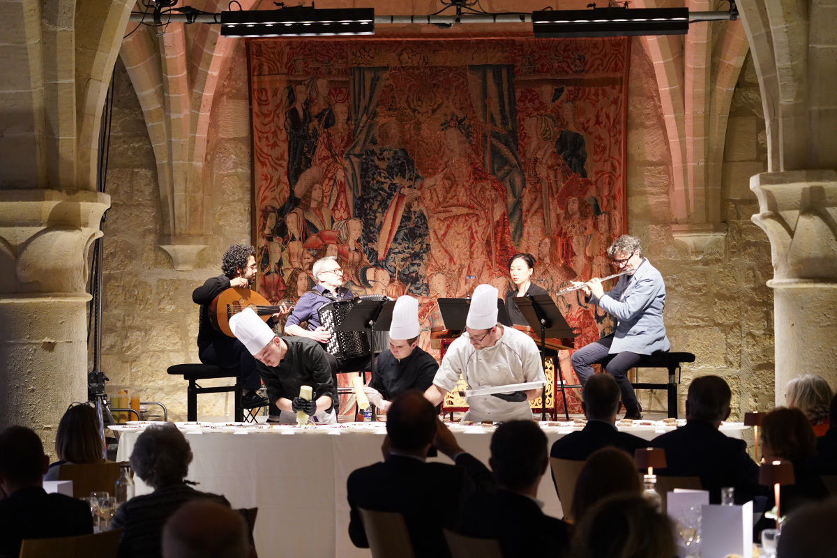 Le premier, le samedi 23 novembre, est quasiment un passage obligé : la « Grande Table » imaginée par le flûtiste Jocelyn Mienniel et le Chef Patrick Derisbourg rencontre un succès qui dépasse – et de loin ! – les limites du département. Dans le réfectoire des moines, ce seront cette fois – outre Jocelyn – la joueuse de yangqin taïwannaise Yaping Wang, le joueur de oud syrien Mohannad Nasser et l’accordéoniste basque Didier Ithursarry dialogueront avec la cuisine réalisée en direct par la brigade de l’abbaye.
