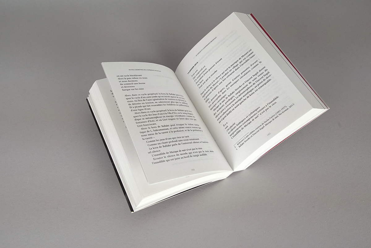 Ces Petites géométries de l’expérience musicale ont été éditées et présentées par Ghislaine Glasson Deschaumes de l’université Paris Nanterre, introduites par Denis Laborde (anthropologue au CNRS et à l’EHESS) et postfacées par Francis Maréchal (Directeur de la Fondation).