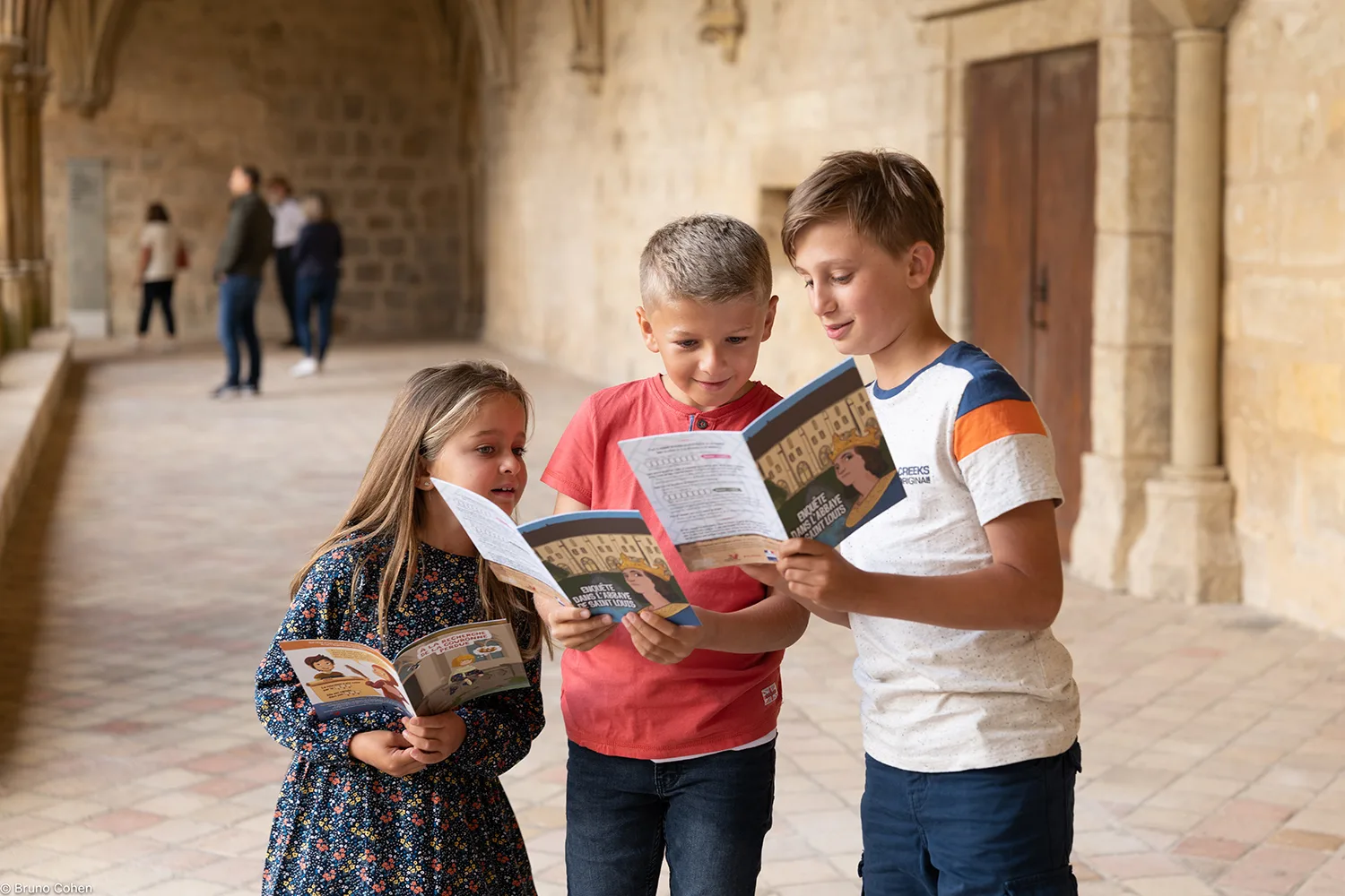 Dès l’entrée, des livrets de jeux-parcours sont offerts aux plus jeunes. Ils permettent aux enfants de découvrir de façon ludique l’histoire de l’abbaye tout en repérant des détails architecturaux, des éléments de décoration ou de mobilier.
