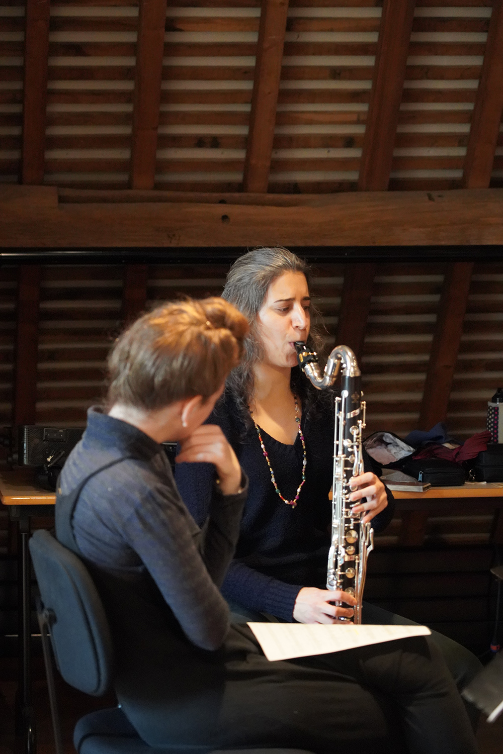 C’est ainsi que s’est développé The Nine Jewelled Deer, le nouveau projet de la compositrice Sivan Eldar, déjà venue à l’abbaye à de nombreuses reprises. Elle collabore ici avec la chanteuse-improvisatrice Ganavya Doraiswamy. La première est une créatrice reconnue, férue de musiques électroniques, la seconde est l’héritière des traditions musicales de l’Inde du sud, enrichies par le jazz. Leur travail en commun relève donc de « l’art de la rencontre », si cher à Royaumont. Le metteur en scène Peter Sellars les a vite rejoints, ainsi que la plasticienne Julie Mehretu.