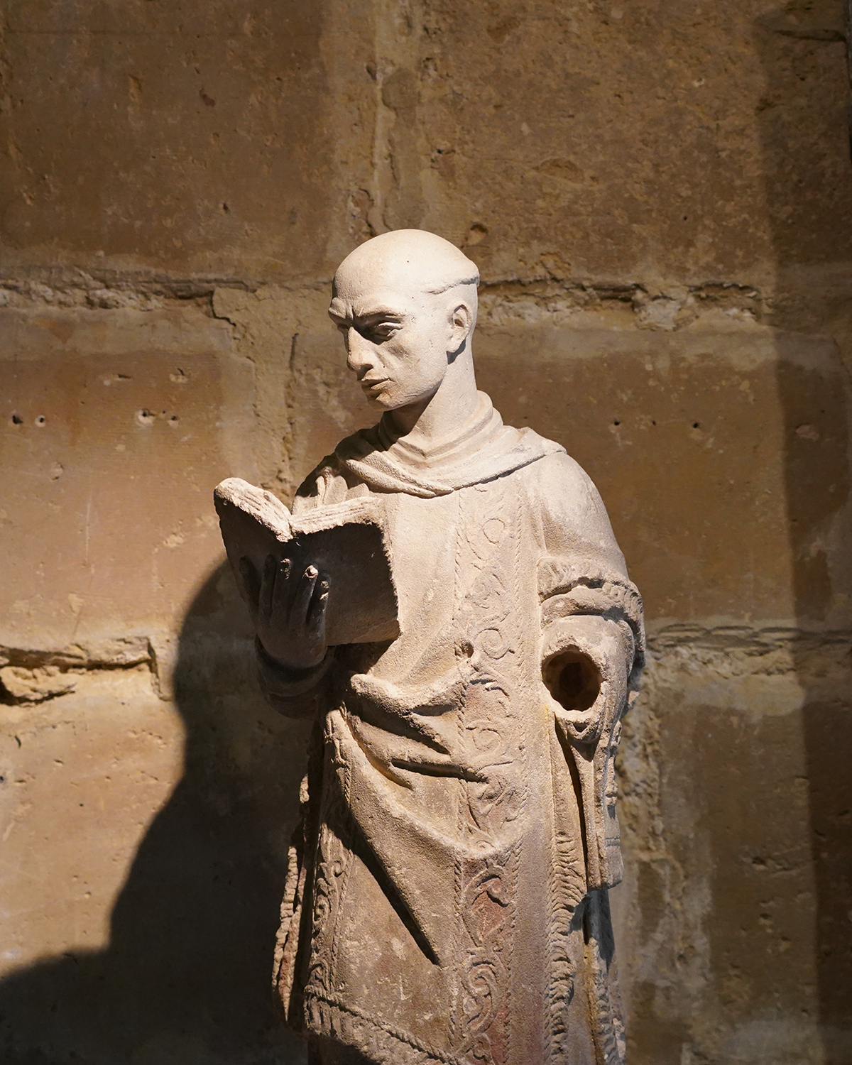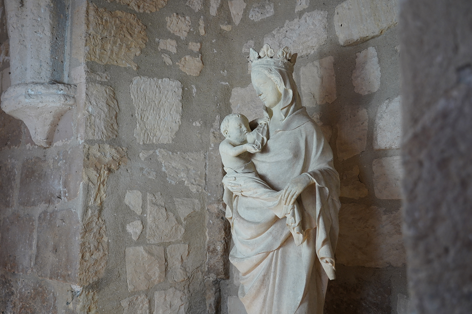 Elle vient de retrouver sa place parmi un ensemble de sculptures médiévales, principalement réunies dans la sacristie mais également dans la cuisine des moines, pour ce qui concerne la statue de la Vierge. Cette « Vierge de Royaumont », dont l’origine exacte n’est pas encore connue, a déjà été présentée par deux fois dans le cadre d’expositions nationales, au Grand Palais en 1981 et au Louvre en 2004.